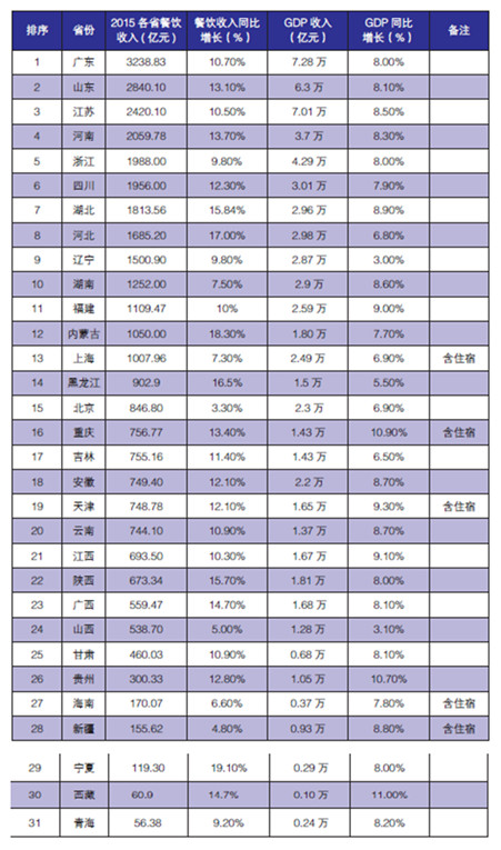 2016 年度國內各省市餐飲收入排行(2015 財年)